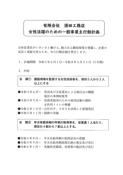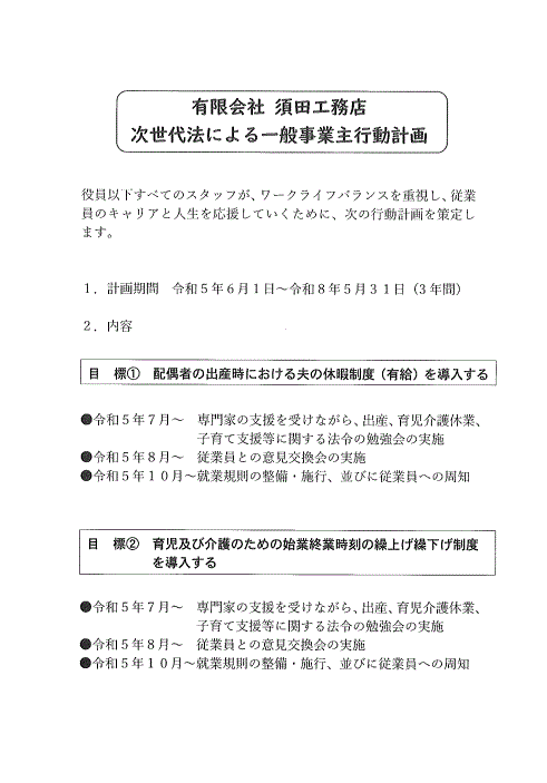 有限会社 須田工務店 次世代法に基づく一般事業主行動計画